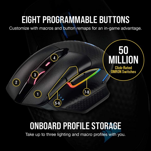 ماوس گیمینگ DARK CORE RGB PRO SE کورسیر به شما کمک می کند بدون سیم نیز برنده شوید؛ فناوری پیشروی SLIPSTREAM WIRELESS با امکان اتصال زیر 1 میلی ثانیه ، یک حسگراپتیکال سفارشی 18000 DPI بهینه شده برای ماوسهای بی سیم و فسیستم نمونه برداری با نرخ تا 2000 هرتز.